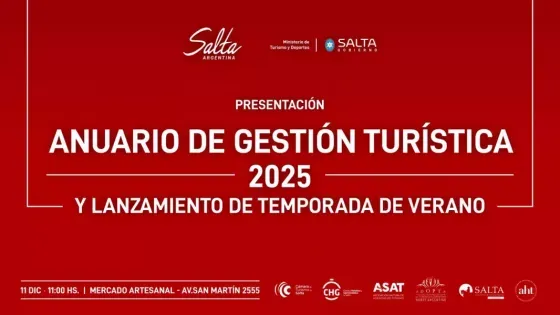 A partir de las 11 en el Mercado Artesanal, el Ministerio de Turismo y Deportes de Salta convocó a autoridades y sectores privados para poner en marcha la temporada de verano 2025-2026. En el mismo acto se difundirá el Anuario de Gestión Turística 2025 con información detallada sobre la actividad turística local, convirtiéndose en uno de los documentos centrales de la jornada.