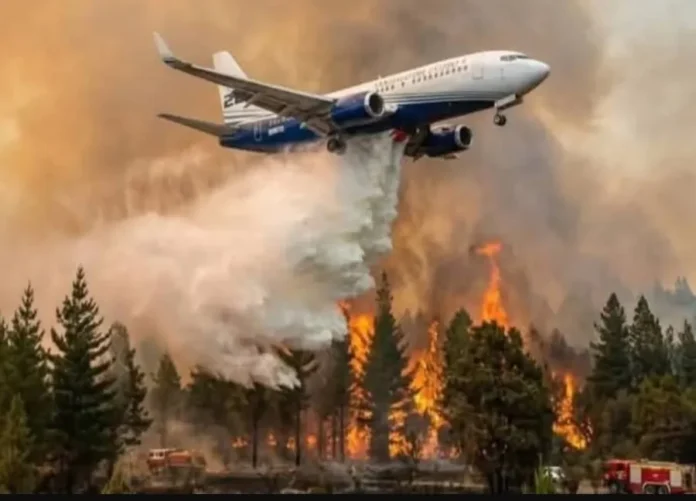 El Boeing 737 Fireliner, considerado el avión hidrante más grande de Latinoamérica, ya está operando sobre el fuego que afecta a amplias zonas forestales de Chubut. La aeronave, que forma parte del esquema aéreo de emergencias de Santiago del Estero e integra el sistema nacional de manejo del fuego, realiza descargas masivas de agua y retardante sobre los focos más activos en la zona cordillerana, en coordinación con helicópteros, otros aviones y brigadistas en tierra.