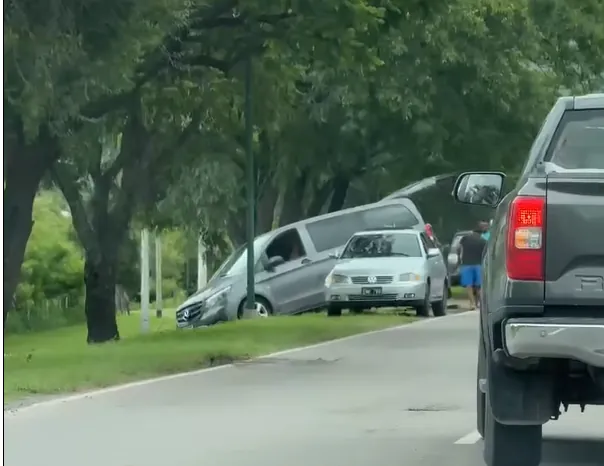 Una camioneta Mercedes-Benz que se desplazaba por la ruta provincial 32 terminó este domingo en una peligrosa posición al costado del camino, a pocos metros del acceso a Chicoana, tras un accidente que no dejó heridos pero sí generó preocupación entre quienes circulan por esa zona. El vehículo, en el que viajaba una familia con menores, quedó inclinado y con una rueda trasera suspendida en el aire, lo que obligó a interrumpir parcialmente el tránsito mientras se aseguraba el rodado y se despejaba la calzada.