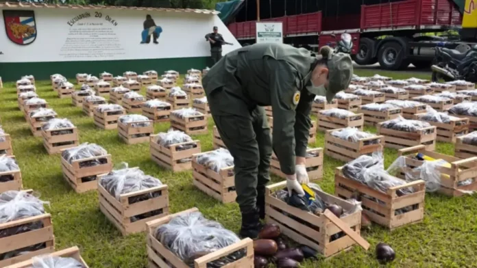 Al revisar la carga con mayor detalle, los gendarmes ubicaron 30 bultos rectangulares estratégicamente camuflados entre las berenjenas. Los paquetes estaban, según describieron, “prolijamente envueltos en cinta amarilla”, una presentación que el personal identificó como frecuente en el transporte de cocaína vinculada al tráfico de drogas en la región.