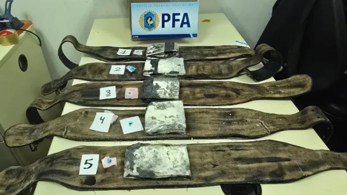Dentro de la caja encontraron cinco cinturones que, a simple vista, parecían normales. Sin embargo, los efectivos detectaron que estaban modificados para el transporte de droga. Al cortar parte de las costuras y revisar el interior, descubrieron los compartimentos donde se ocultaba la cocaina compactada, de acuerdo con lo informado por fuentes del caso.